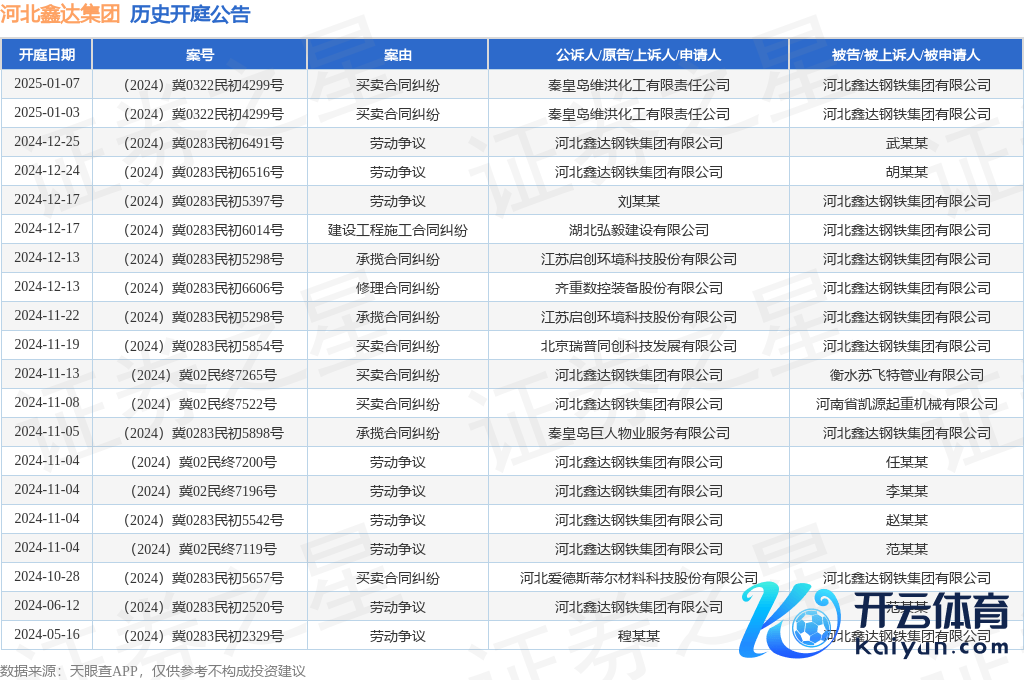 本站音书,凭据天眼查APP泄漏,近日公布了一则河北鑫达钢铁集团有限公司当作被告/被上诉东说念主的开庭公告,详备本体如下: