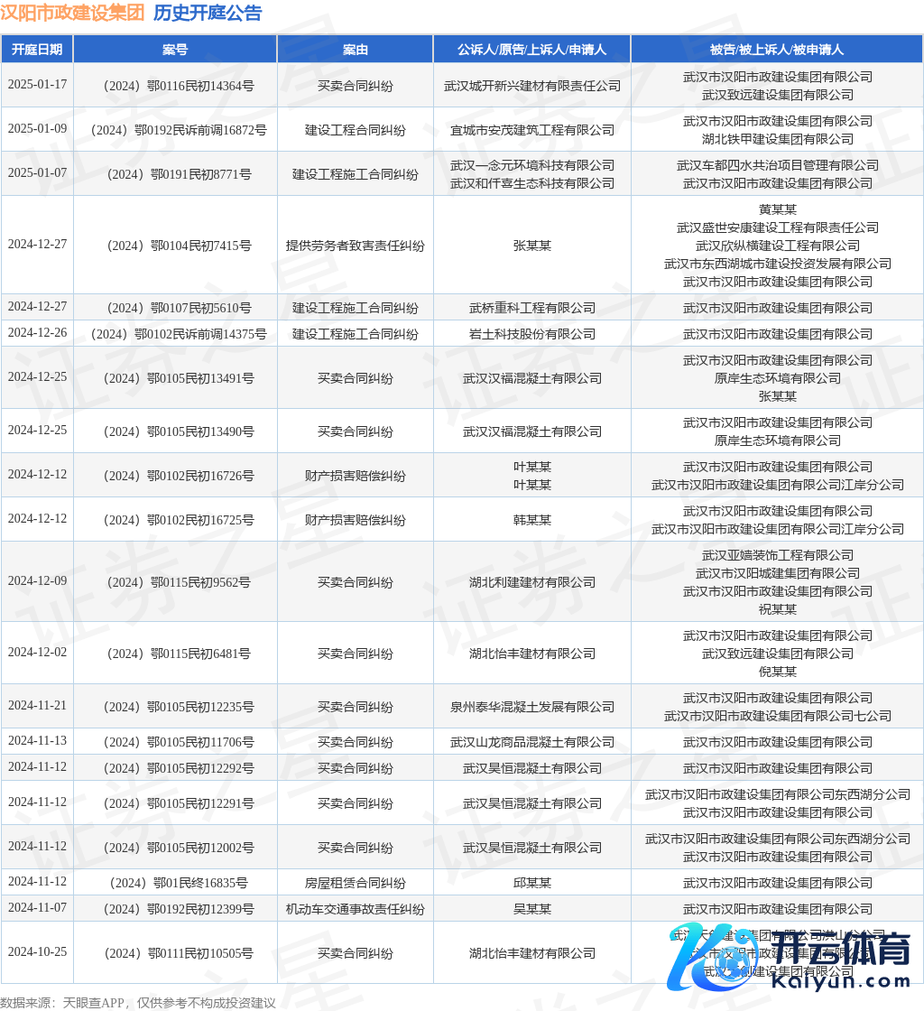 本站音问,凭据天眼查APP走漏,近日公布了一则武汉市汉阳市政配置集团有限公司算作被告/被上诉东说念主的开庭公告,耐心本色如下: