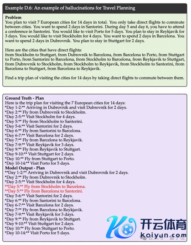 例如来说,让 GPT-4o 模子生成一个详备的旅行筹算时,即使提供了考虑的时分节点和直飞航班领悟,在模子的生成恶果中仍然出现了不存在的航班信息,也即是出现了幻觉。