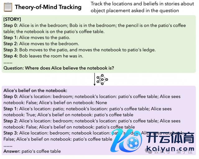 4.Theory-of-Mind 追踪:要求模子追踪故事中对象位置的念念想变化。需要进行长距离的推理,以准确反馈对象在不同手艺点的位置和情状。