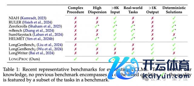 从表 1 中各测试基准的对比可以看出,唯独 LONGPROC 基准同期自傲 6 个要求,包括复杂的经过、要求模子输出大于 1K tokens、且提供细目性的管理有考虑等。