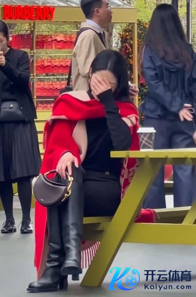 隔天的 Burberry(巴宝莉)行为又换了画风,勤俭黑长直发型搭配大红色披肩,肩颈线条优胜,气场冷艳疏离,生图现象被网友夸"好意思貌压不住"。