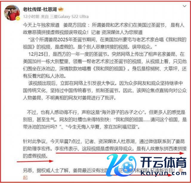 彼时有多位博主发视频称姜昆和一众老艺术家在好意思国加州过圣诞节,并演唱《我和我的故国》,在好意思国祝愿故国圣诞舒心。