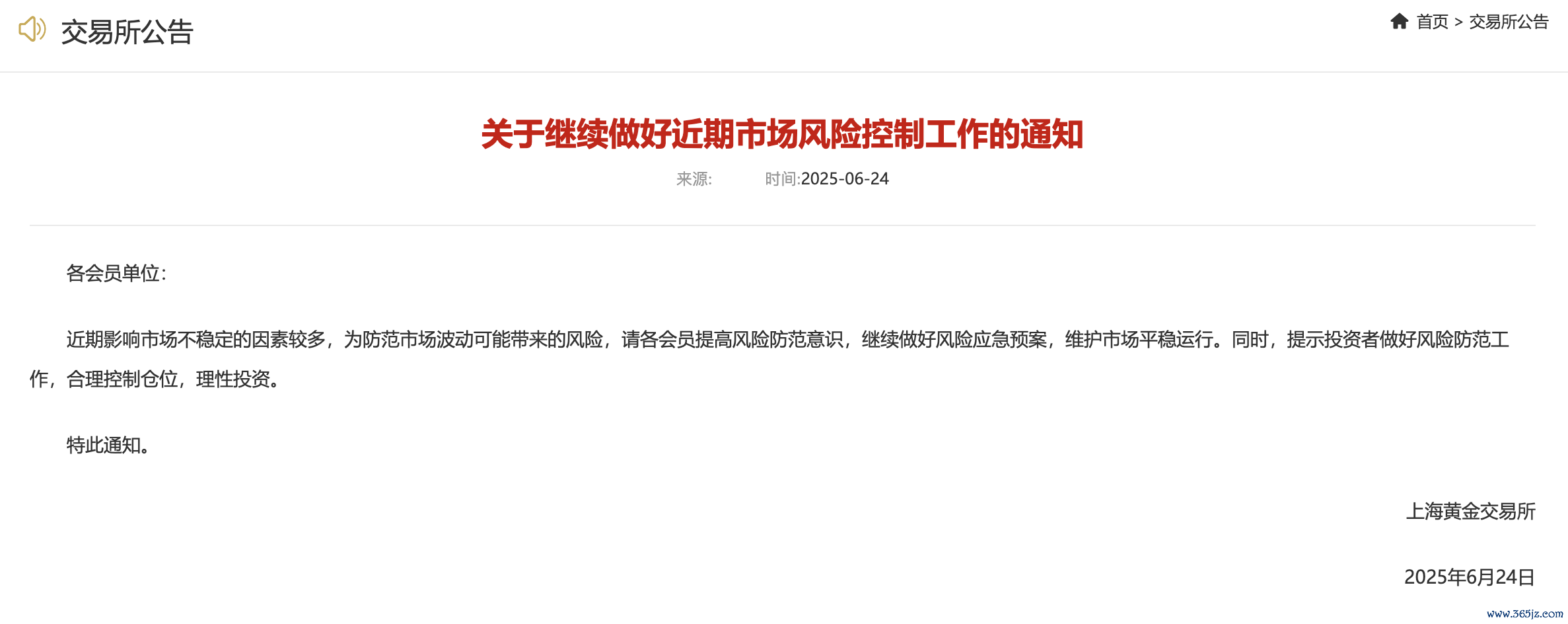 上金所发布对于不绝作念好近期市集风险限制职责的告知上金所发布对于不绝作念好近期市集风险限制职责的告知