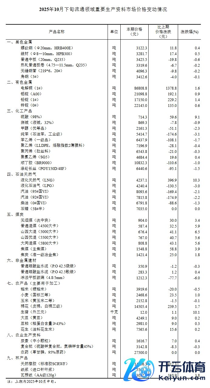 据对天下流畅界限9大类50种进攻坐褥尊府阛阓价钱的监测显现,2025年10月下旬与10月中旬比较,26种家具价钱上升,22种下落,2种抓平。